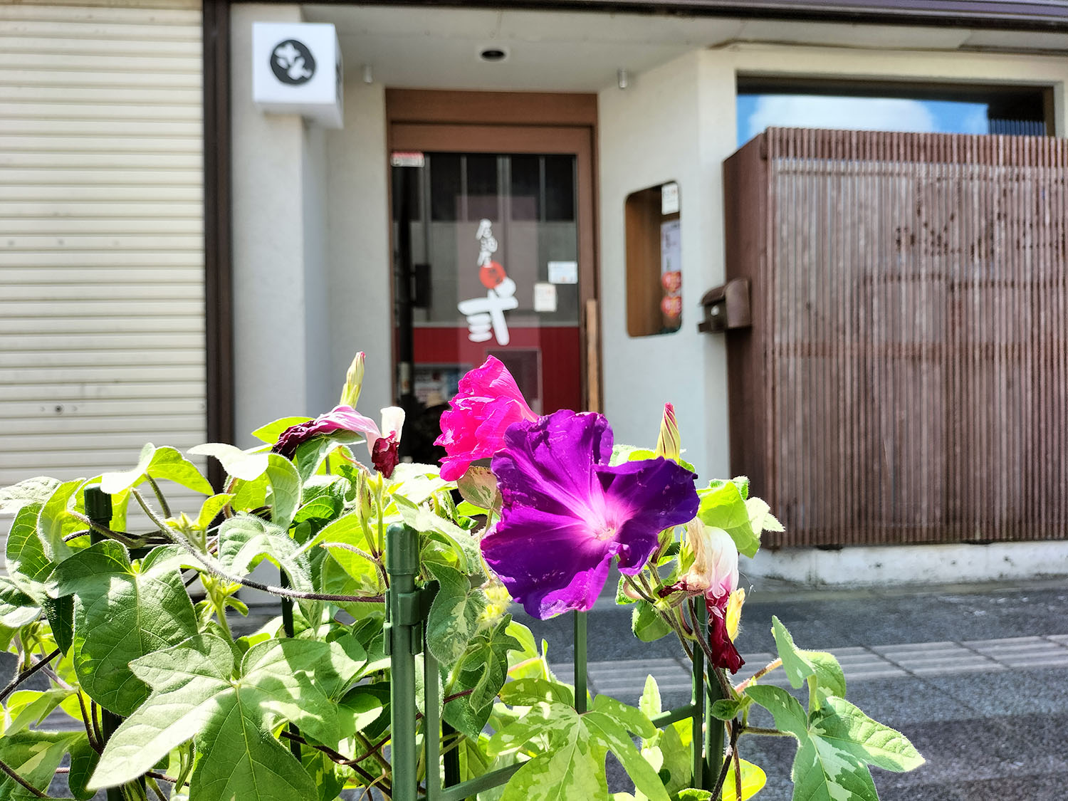 まっとうまちなか商店街では白山市が行っている「千代女あさがおまつり」に参加しております。商店街のいたるところにあさがおを栽培しています。ぜひ足を止めてみてください。